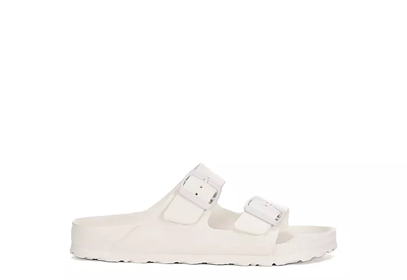 An upgrade on the laid-back comfort pioneer, the Arizona Essentials women’s slide sandal by Birkenstock features an EVA footbed with pronounced arch support, a roomy toe box, and a deep heel cup. Two lightweight straps with pin buckles provide an adjustable fit.