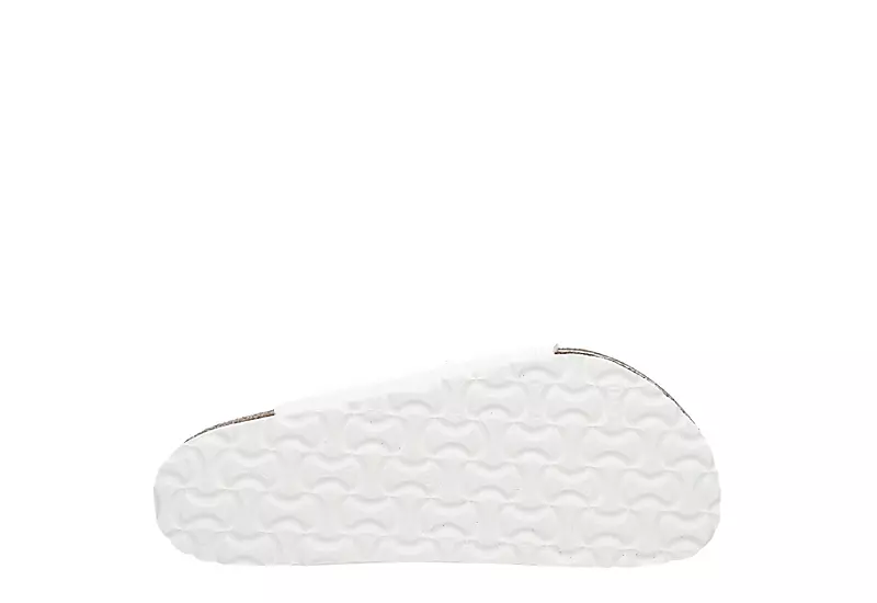 Take on the tropics in the easygoing Florida women’s soft footbed sandal from Birkenstock. Crafted using faux leather featuring adjustable buckle straps for a custom fit, this slip-on sandal has a suede lining for a nice feel. The additional foam layer works with the cork to pamper your foot, while the textured EVA outsole offers some traction.