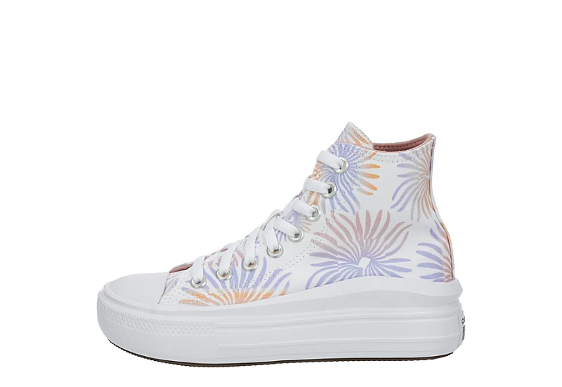 Bold, lightweight, and still classic Chucks – the Converse Chuck Taylor All-Star Move women’s high-top sneaker is a favorite for everyday wear. With a canvas upper featuring a pastel floral print and an iconic Chuck Taylor ankle patch, these lace-up sneakers let you express yourself as they elevate your style profile. An OrthoLite insole and rubber outsole cushion your feet while ensuring stability and support, so every step feels better than the last.