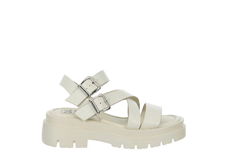 Welcome the warm weather in the comfort of the Khan women’s sandal from Dirty Laundry. Featuring a faux leather upper with a progressive strap design that includes crisscrossing, this double buckle sandal will be a standout this season. The footbed cushions your steps while the 2″ lug outsole has traction covered.
