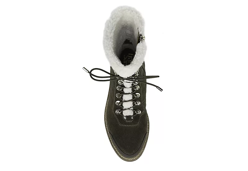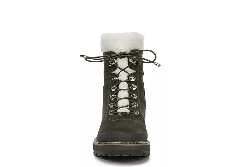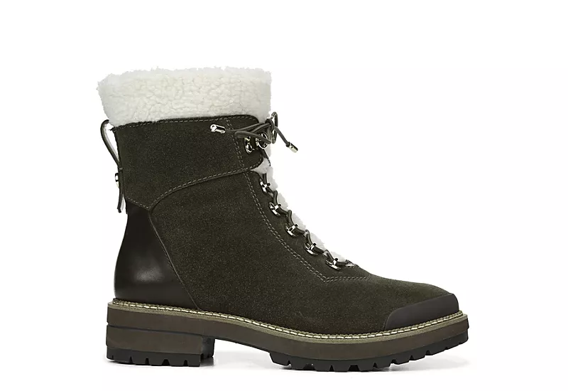 Waterproof your winter style with the Franco Sarto Rosella women’s combat boot. Featuring a faux suede & faux leather upper with a faux fur trim for extra warmth, this inside zip bootie also has a stylish hiker-inspired lace-up front.The unique eyelets set their own trend while lug outsole offers deep traction.ย