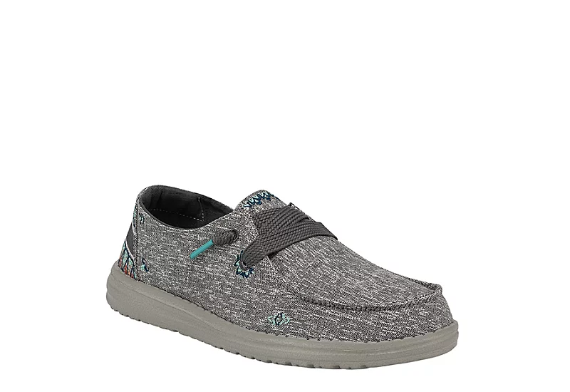 Relax into your passion with the HEYDUDE Wendy Flora women’s slip-on sneaker. With a breathable chambray-blend upper featuring embroidered details and Flex & Fold technology, this sneaker is machine washable for easy maintenance. The removable Memory Foam insole and leather lining offer ergonomic support and cushioning, while the ultralight outsole sets you free to explore unfettered.