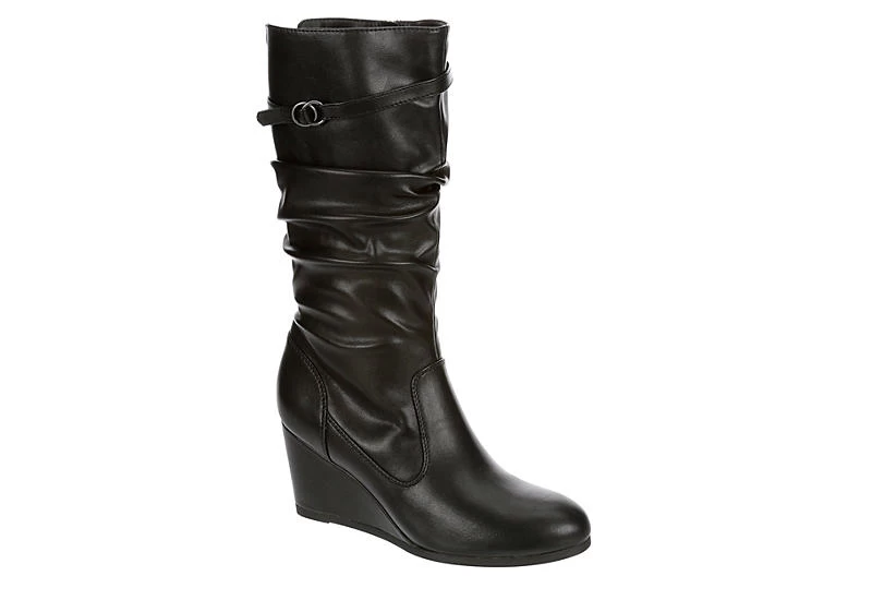 Add some fun to your fall boot game with the Lauren Blakwell Johanna women’s wedge boot. Featuring a faux leather upper with slouch detailing for extra style, this inside zip boot brings the oomph to your look. The lightly padded insole soothes your foot while the wedge heel offers stable lift to keep you moving.