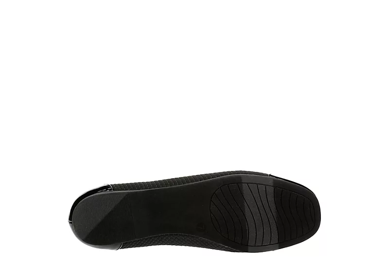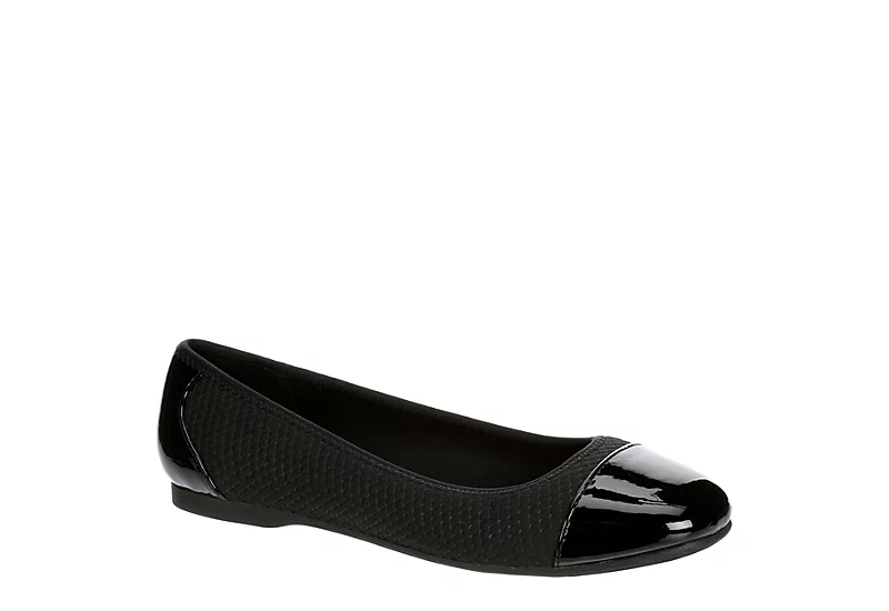 Dress up your look with the Sutton women’s flat from Lauren Blakwell. With a shiny patent leather and fabric upper, this stylish slip-on flat is perfect for the office or daily errands around town. The cushioned insole soothes and supports your feet, while the rubber outsole provides a sturdy grip with every step.