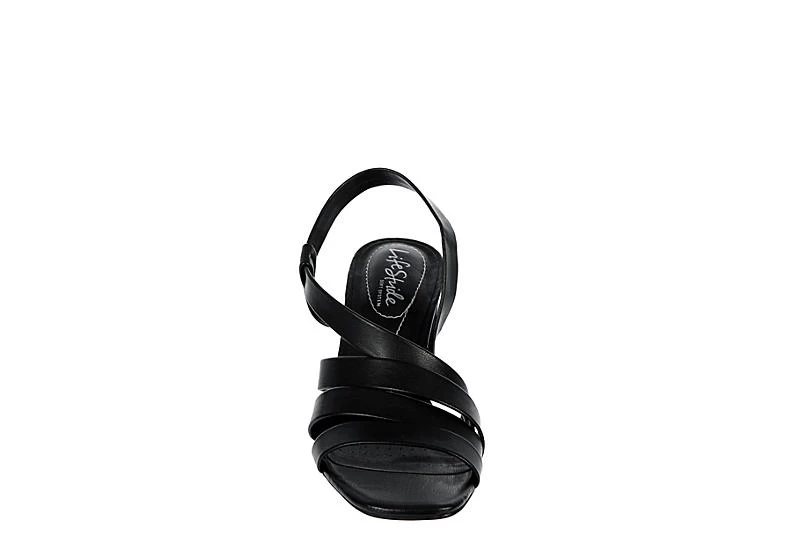 For everyday star power, try this stylish LifeStride Broadway women’s sandal. With a faux leather upper and stretch gore ankle strap for easy fit, these slip-on sandals also feature a hint of chic square toe. The Soft Systemยฎ cushioning supports your foot while you walk on the stable 3 1/4″ย heel.ย