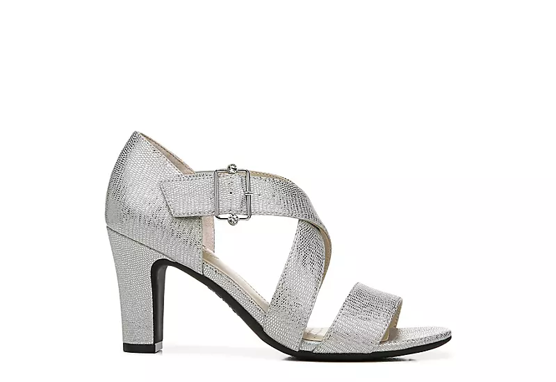Let your toes peep out from the LifeStride Carlyle women’s sandal. With a faux leather upper featuring inside stretch gore for a secure fit, this buckle strap sandal announces your presence with a bold strappy design. The Soft System comfort package provides all-day support and flex cushioning while the 3″ block heel is just the right height for a great impression.