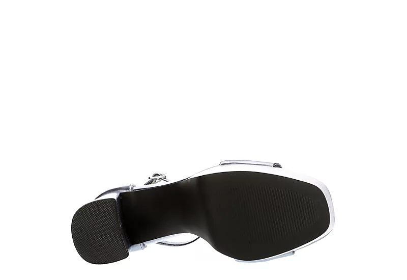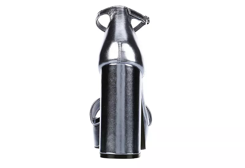 Set the tone in the Omega womenโs platform sandal from Madden Girl. With a metallic faux leather upper featuring a square toe for extra style, this ankle buckle strap sandal is retro-inspired but will elevate your current fashion trends. The chunky platform heel stands 4 1/2″ tall and looks fantastic with jeans, miniskirts, and dressy shorts.