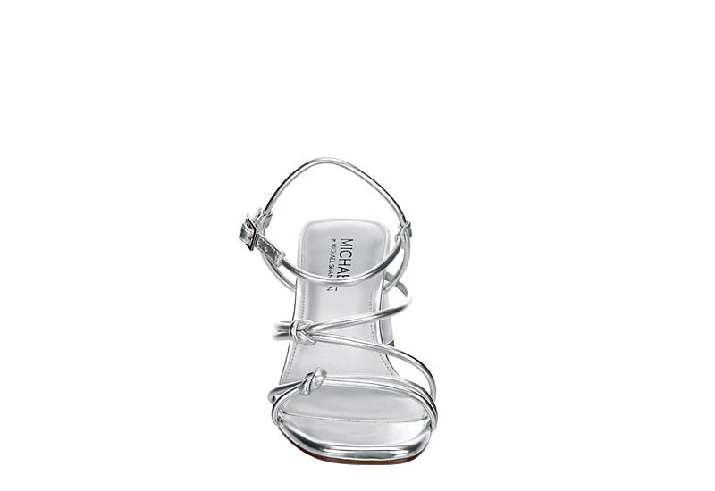 Make an impression in the Tristan women’s sandal from Michael By Michael Shannon. With a metallic faux leather upper featuring a strappy design and knot detailing, this sandal has an adjustable ankle strap for a perfect fit. A lightly cushioned footbed comforts your feet, while the flared block heel provides an elegant lift.