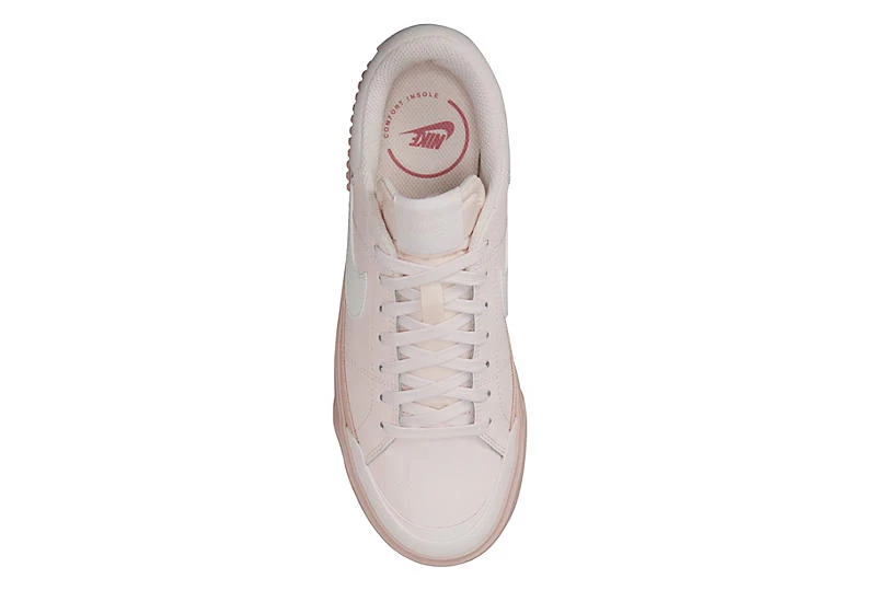 Enhance your footprint in the Nike Court Legacy Lift women’s sneaker. With a faux leather upper featuring a padded collar & tongueย for extra comfort, this blush sneaker makes a bold statement with classic style. The platform midsole offers just enough lift, while the rubber outsole holds you down with necessary traction.