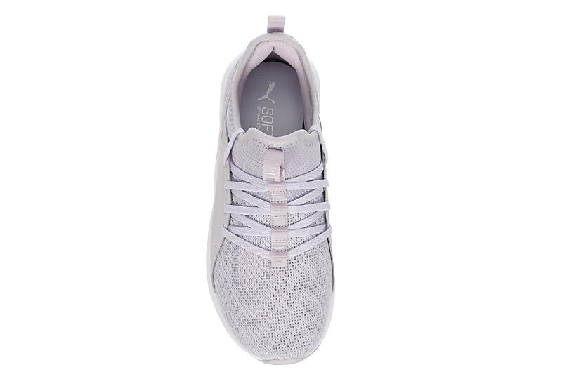 Flow through your next workout in the PUMA SoftRide Sophia 2.0 women’s running shoe. With a mesh & synthetic upper featuring a lace-through cage for stability, this sneaker also has dual pull tabs for easy entry. The SoftFoam+ footbed & SoftRide midsole offer comfort with each step while the rubber sole has grippy traction.