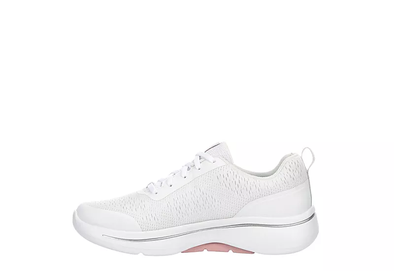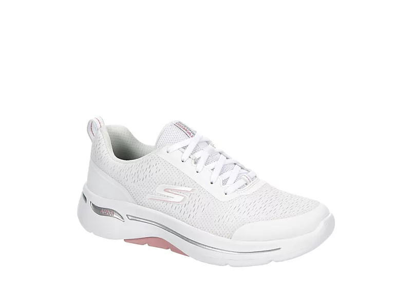 Leisurely strolls were made for the Skechers GO WALK Arch Fit women’s sneaker. With a breathable mesh upper featuring Comfort Pillar Technology for extra support, this lace-up shoe includes podiatrist-certified arch support as well. The removable Arch Fit insole & ULTRA GO cushioning reduce shock while the outsole offers flexible traction.