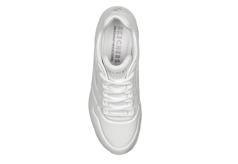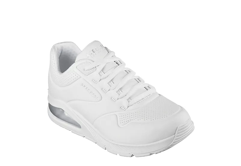 Update your wardrobe with the comfort and style of the Skechers Street Uno 2- Air Around You women’s sneaker. With a synthetic perforated duraleather upper featuring contrast details and lace-up closure for a secure fit, this fashionable sneaker will be a favorite for casual strolls. An Air-Cooled Memory Foam® insole and Skech-Air® air-cushioned midsole offer exceptional support, while the rubber outsole provides outstanding grip and traction.