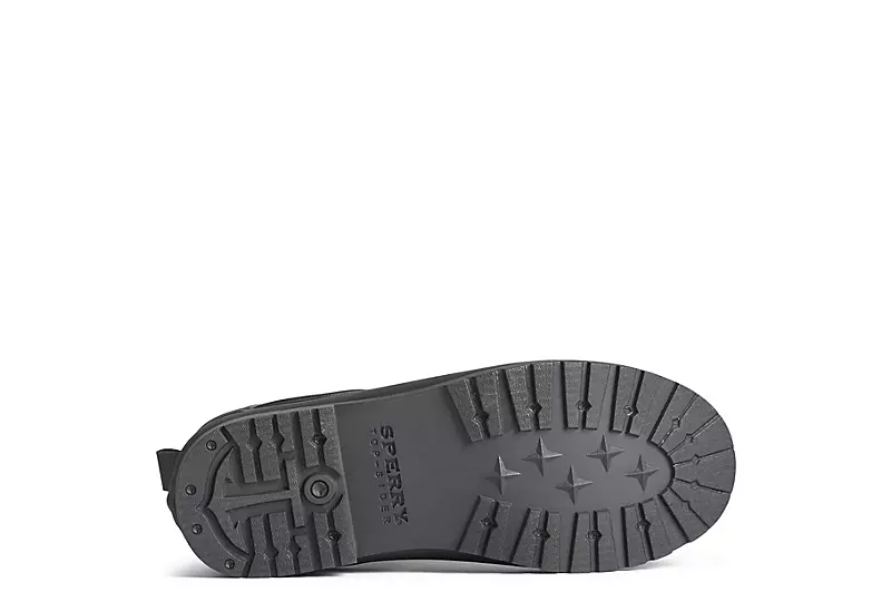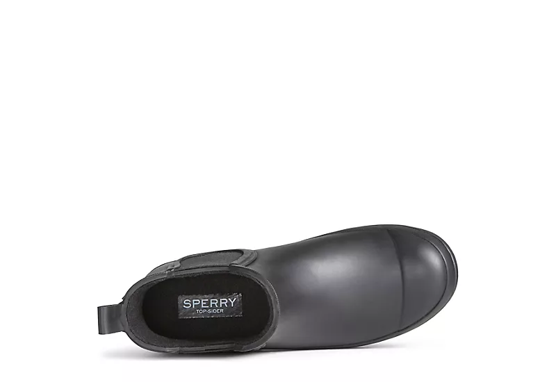 Rain becomes stylish in the Sperry Walker Chelsea women’s rain boot. With a waterproof rubber upper and elastic side panels for a secure fit, these pull-on boots will keep you dry and fancy free. The micro-fleece lining keeps your feet warm while the non-marking rubber outsole has Wave-Siping for wet/dry traction.
